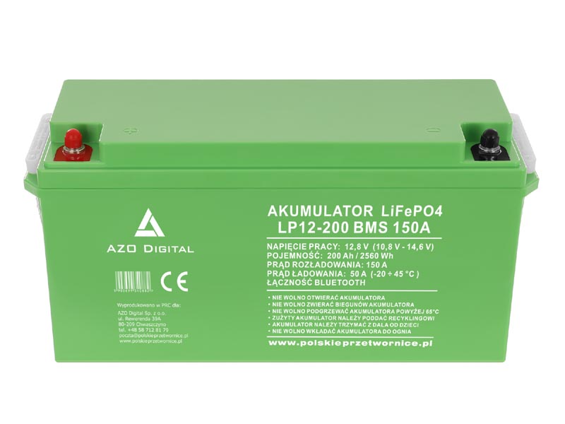 AZO Digital LiFePO4 12V 200Ah (LP12-200) — Bluetooth + mata grzewcza