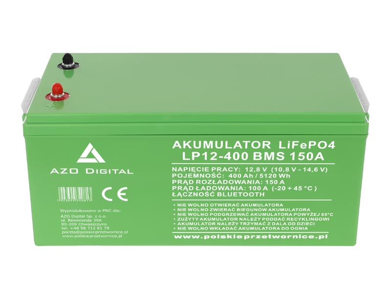 AZO Digital LiFePO4 12V 400Ah (LP12-400) — Bluetooth + mata grzewcza