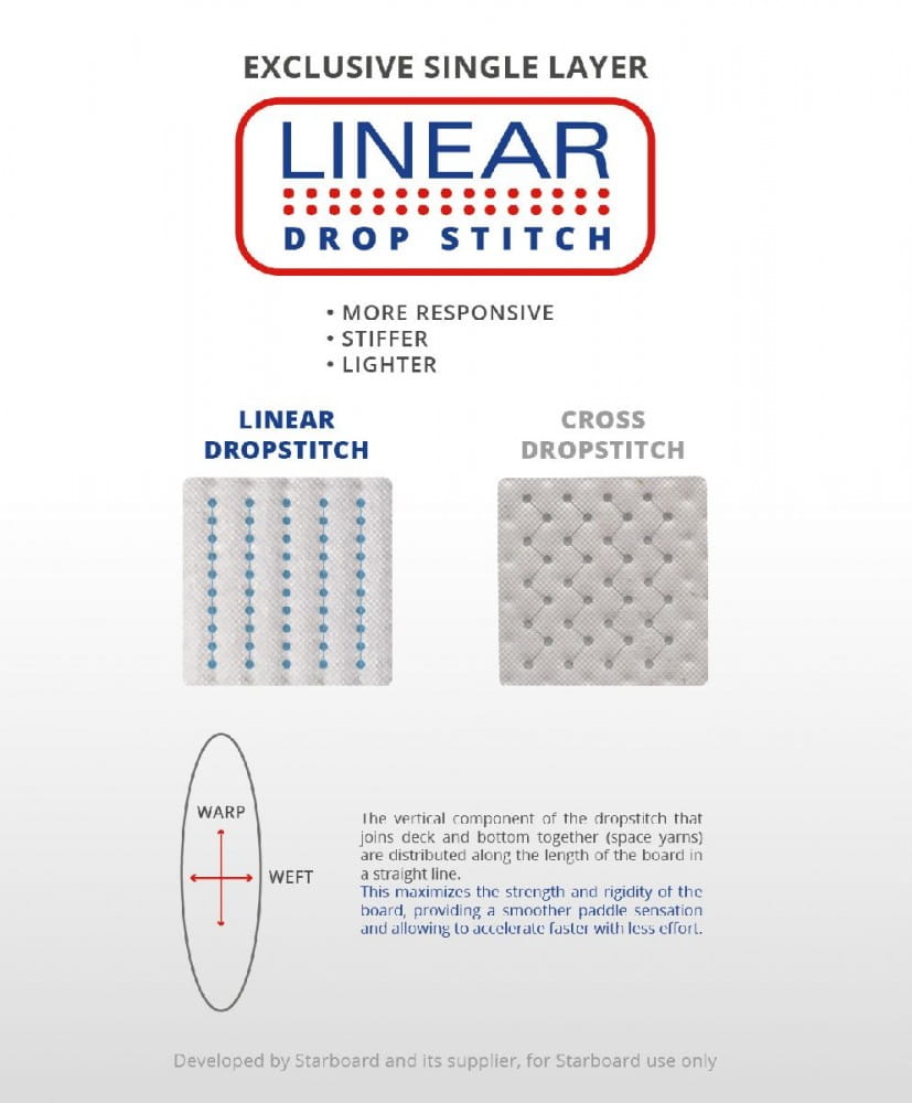 Linearny układ włókien drop stitch zapewnią jeszcze większą sztywność i wytrzymałość.