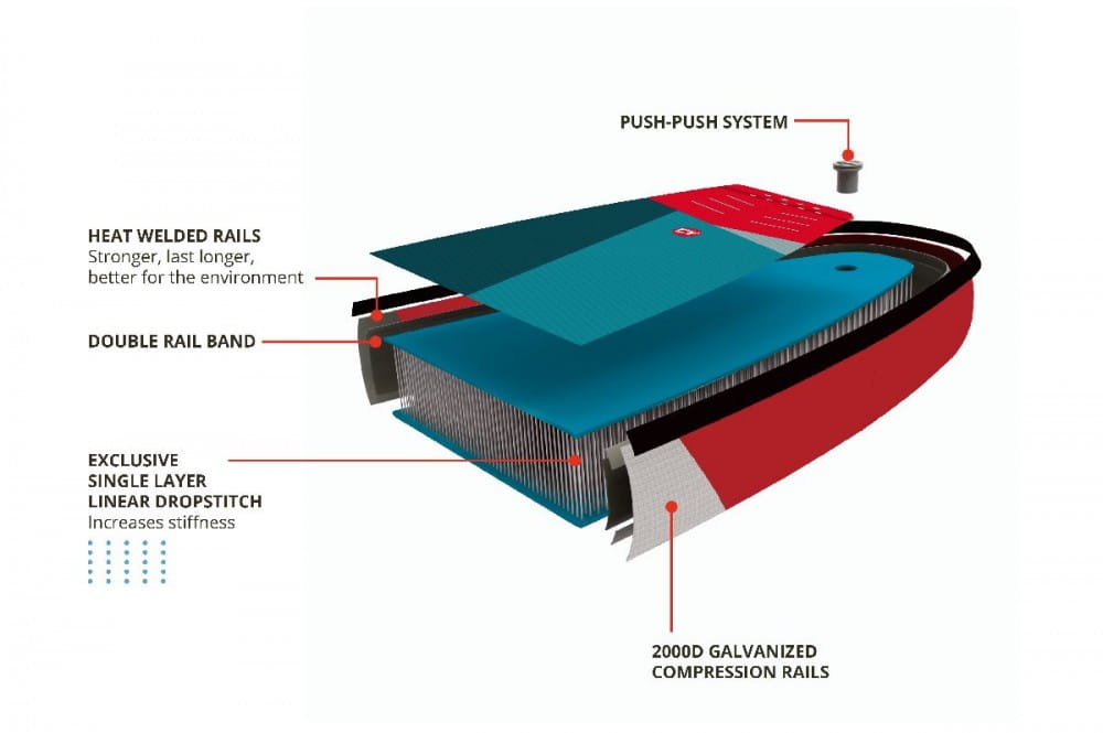 Pompowane deski windsup Starboard wyposażone są w technologię 3D Rail Edge, która podąża za konturami deski i tworzy krawędź, która pozwala deskom całkowicie się płasko spasować, a jednocześnie złożyć i zwinąć. Dzięki tej krawędzi 3D możesz przyspieszyć i cieszyć się najbardziej ekscytującym ślizgiem na pompowanej desce.