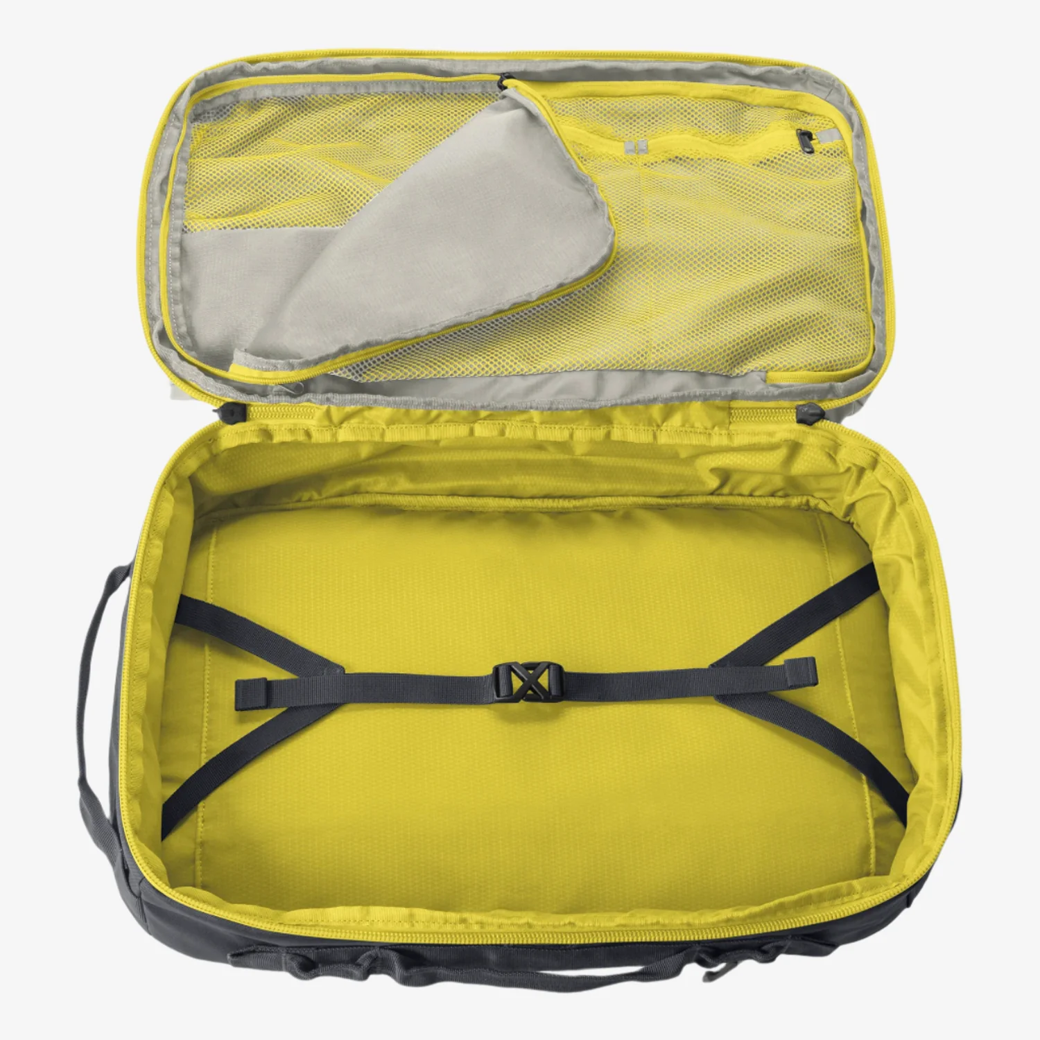 Tour Travel Pack 40L to kabinowy plecak zaprojektowany do sprawnego przemieszczania się między lotniskiem, miastem i mariną. Frontowa, odporna na warunki komora, książkowe otwarcie i ergonomiczne zawieszenie pozwalają wygodnie spakować i nosić bagaż. Materiały pochodzą w 100% z recyklingu i są wolne od PFC/PFAS.