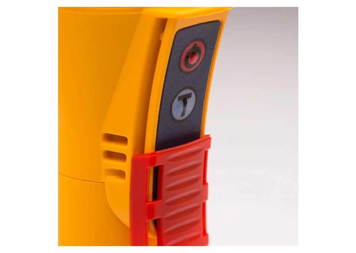 - Odblokuj i chwyć pewnie. Zdejmij osłonę/zwolnij czerwony suwak. Trzymaj flarę pionowo, pewnym chwytem.