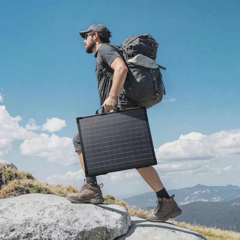 Dwustronna (bifacjalna) konstrukcja generuje energię zarówno z przodu, jak i z tyłu. W połączeniu z monokrystalicznymi ogniwami słonecznymi typu N o sprawności do 25%, PS100 pozwala na lepsze wykorzystanie tej samej powierzchni niż tradycyjny, jednostronny panel 100 W. PS100 został zaprojektowany z myślą o długotrwałym użytkowaniu: obudowa jest pyłoszczelna i wodoodporna (stopień ochrony IP68), a połączenie wzmocnionej aluminiowej ramy i trwałej warstwy wierzchniej chroni ogniwa przed zarysowaniami i codziennym zużyciem.