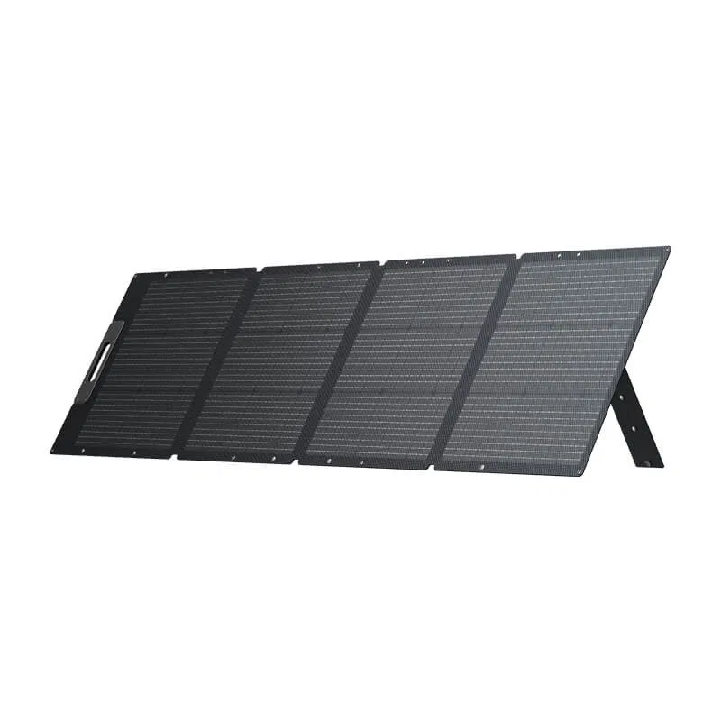 BLUETTI PV200 to składany panel solarny 200W z wyjściem MC4, zaprojektowany do ładowania mobilnych stacji zasilania oraz pracy w terenie. Konstrukcja z laminacją ETFE i rozkładana podpórka ułatwiają ustawienie pod słońce, a po złożeniu panel zajmuje mało miejsca w bagażniku lub baku.