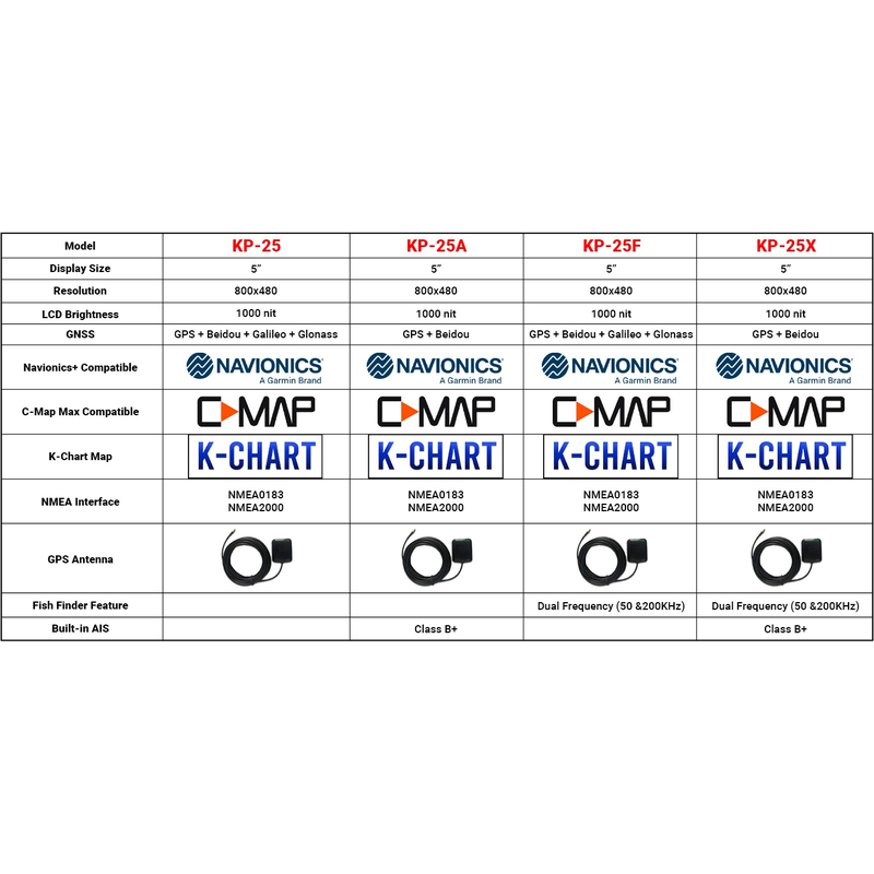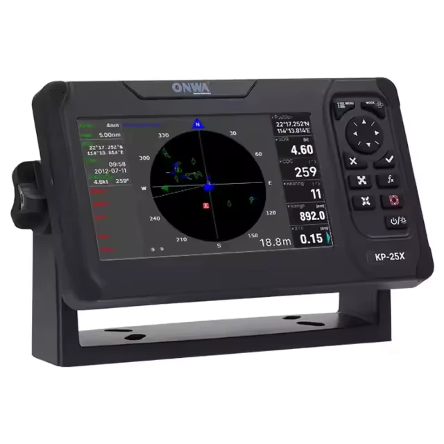 Model Onwa KP-25X łączy funkcje plotera morskiego (Onwa chartplotter) z AIS Class B+ (SOTDMA, 5 W) oraz echosondą 600 W dual frequency 50/200 kHz. 5-calowy ekran 800×480 pozostaje czytelny w słońcu, a szybki GNSS i bogata pamięć tras/śladów wspierają nawigację na jachtach żaglowych i łodziach motorowych.