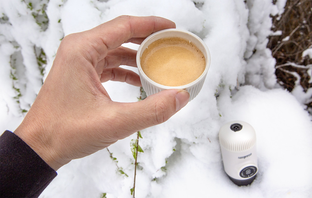 - Ekspres WACACO Nanopresso (Chill White) z kubeczkiem