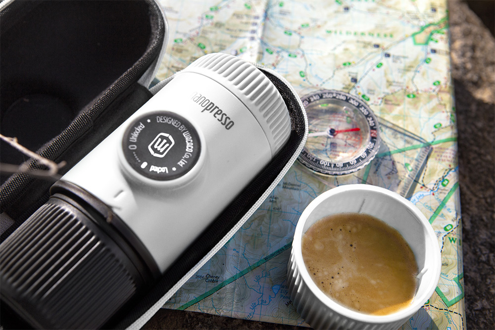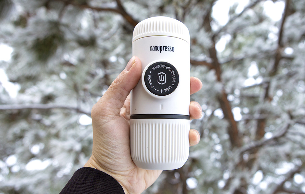 - Model/kolor: WACACO Nanopresso — Chill White + etui