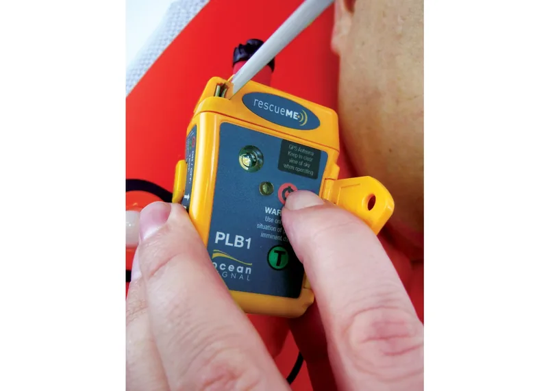 - Odsuń osłonę i przytrzymaj przycisk – PLB1 wysyła alarm 406 MHz z Twoją pozycją.