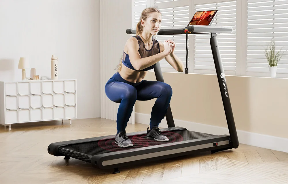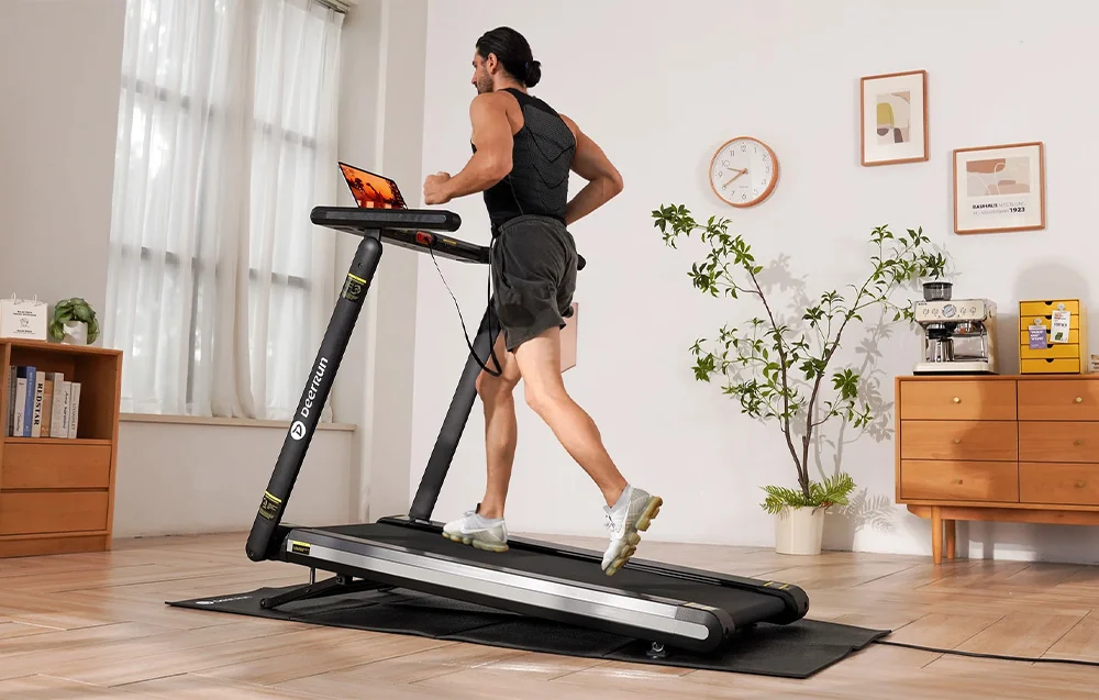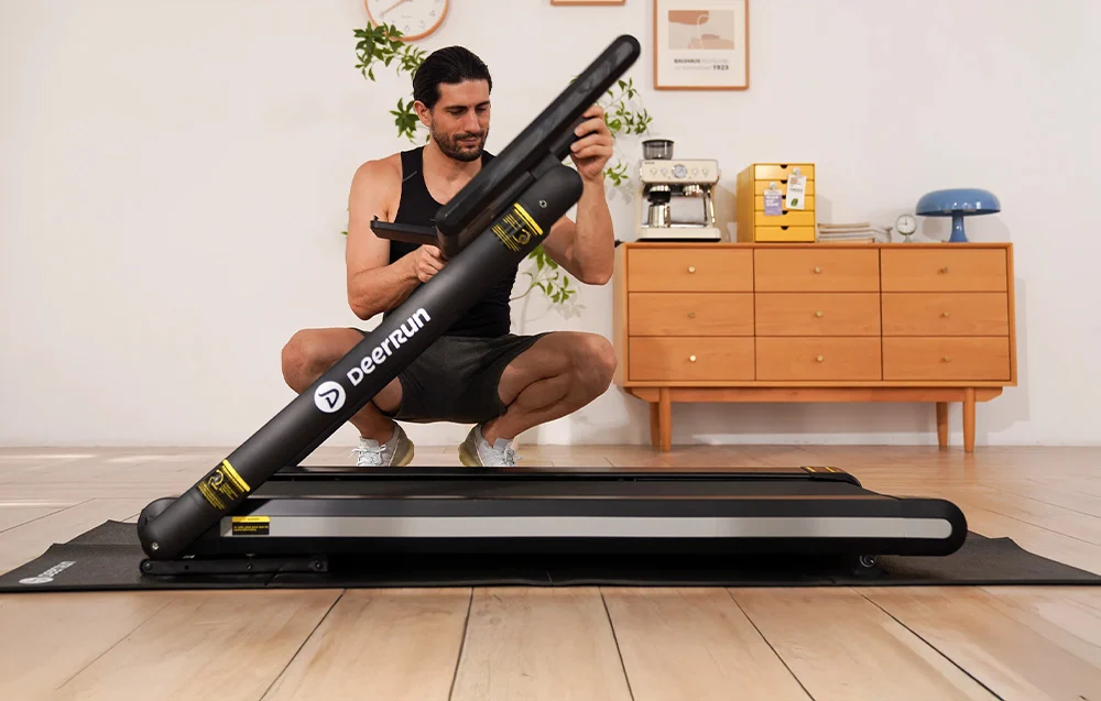 Składana bieżnia z nachyleniem DeerRun X20 (czarna) — 15% auto-incline, pełny pas biegowy i aplikacja PitPat