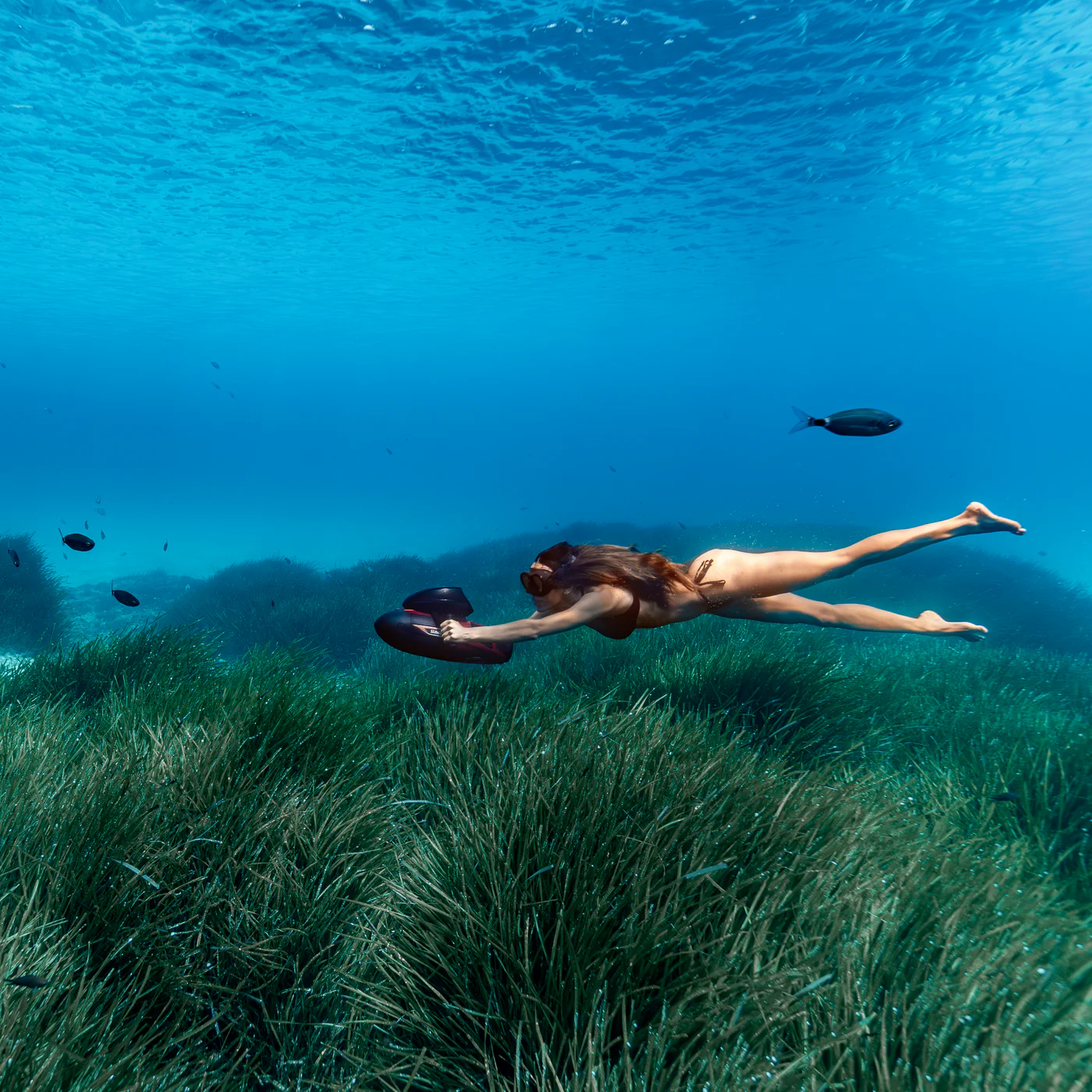 To skuter nurkowy z „kokpitem” funkcji: wyświetlacz z kompasem, dane związane z głębokością i trybem pracy oraz aplikacja z logami pływania. Do tego dochodzi napęd strumieniowy ALO 2.0 zamiast klasycznych śrub.