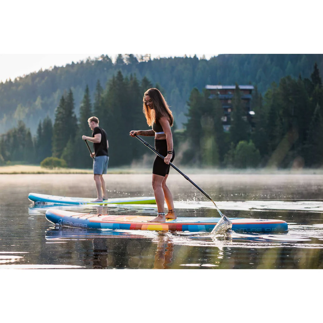 Deska SUP Spinera Supventure Sunset 10.6 łączy w sobie solidność, stabilność i wydajność w imponującym designie. Dzięki technologii Double Layer deska jest wyjątkowo trwała i trwała, dzięki czemu może wytrzymać naprężenia występujące w wodzie i zapewnić lata przyjemności.