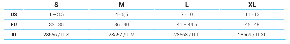 Występują w 4 rozmiarach dopasowanych do zakresu rozmiaru obuwia.