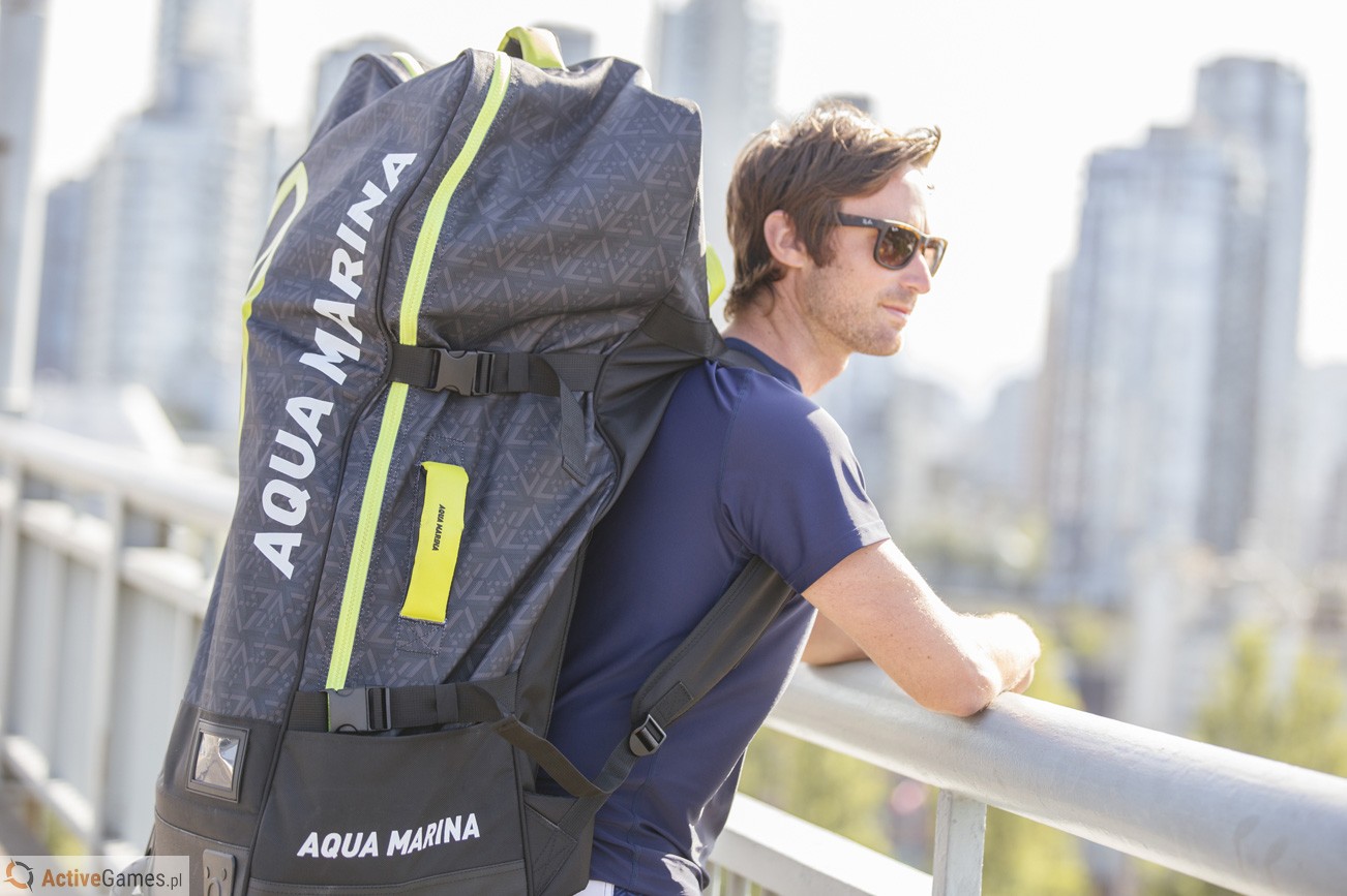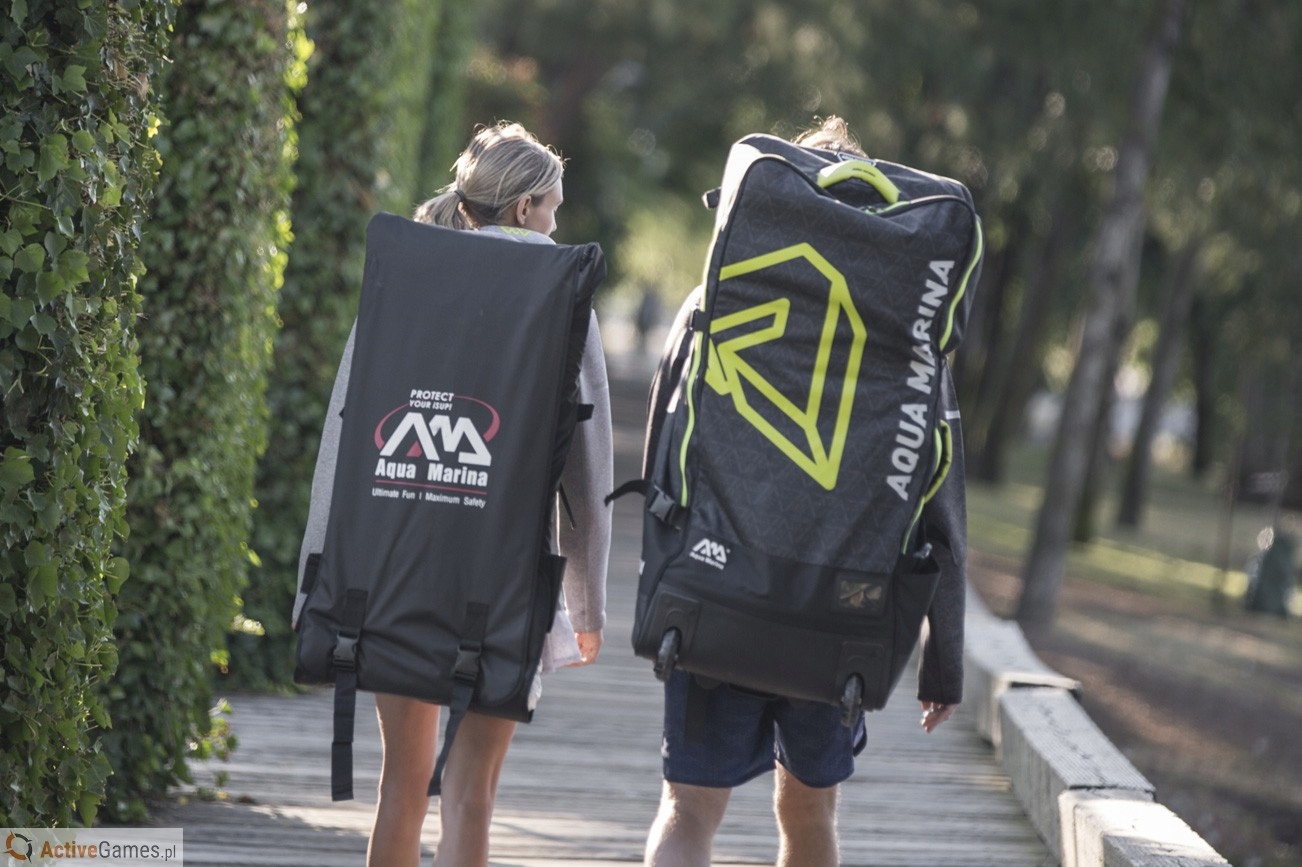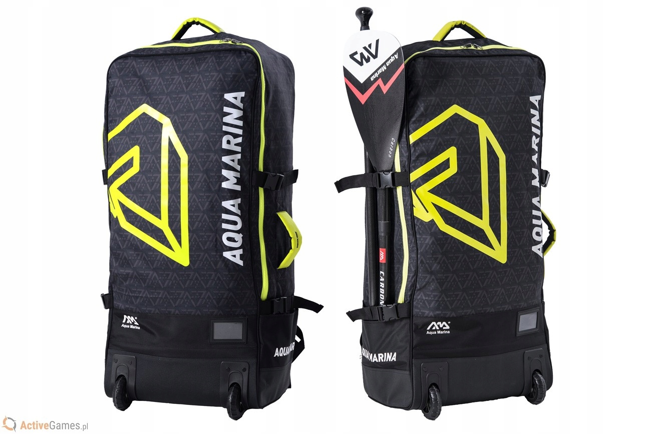 Wygodny plecak na kółkach dedykowany do wygodnego transportu przechowywania desek SUP ale zastawanie ma bardzo szerokie.